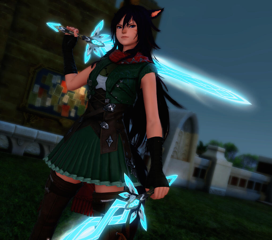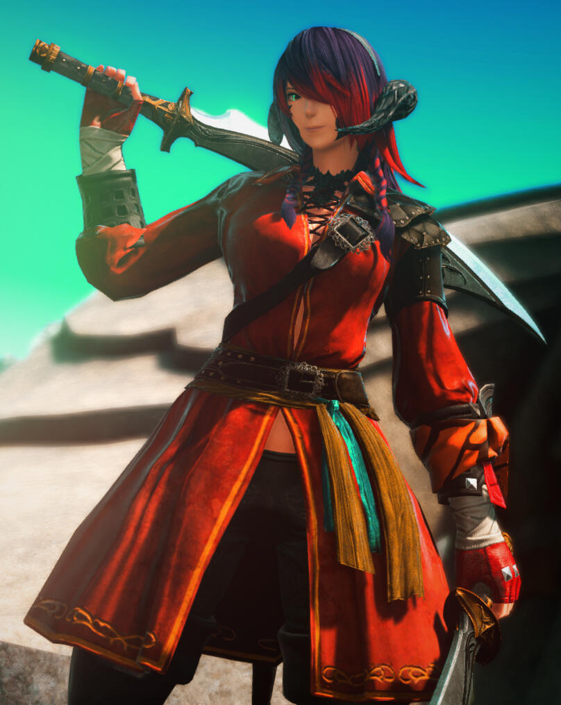Shortly after, she overhears time and time again about Sharlyan from the Astrologians and gets curious about learning more of her magic there. But it wasn't until she saw the corrupted King Thordan making deals with the Ascians and talk of the Allagans. She was angry by this, as the Allagans kidnapped her. She later took her spear and her skills and heads to Sharlyan, where she learns new magic in this era.