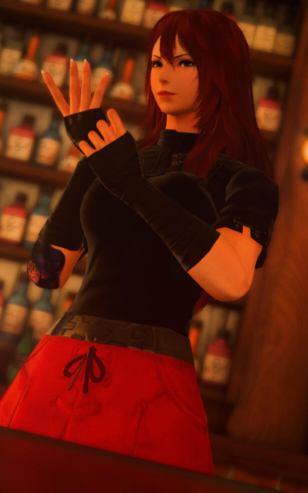 She eventually retired to Xak Tural and lived a life like her once lover, Tifa Lockhart. She was a bartender in a village near Shaaloani, but then a huge blast of lightning energy hit the area and the area was merge with another city. Eventually, with the making if Solution Nine and Everkeep Tower, she made Solution Nine her home. Feeling that itch for adventure again, she joined the Arcadion and used her powers to fight through the tiers without the need of a Regulator. Eventually, she figures out what feral souls do to the user's souls and promptly retired from that and became bartender there, spending several years there before eventually leaving after the Warrior of Light opened the way out, going to Shalloani and back to Eorzea.